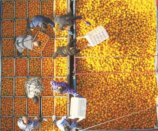 2022年12月9日,道县白芒铺镇野竹福村,村民将脐橙装车外运(资料图片)。蒋克青 摄
